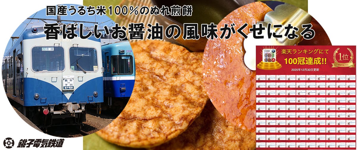 ◆商品説明 一度食べると病みつきになる美味しさです。 銚子電鉄のぬれ煎餅は、焼きあがった熱々のお煎餅を、銚子特産の醤油のコクとうま味を活かした特製だれに浸します。ジュワ~という音が響き、香ばしい香りが漂います。タレがしみ込み、しっとりした独特の食感が特徴のお煎餅は、癖になる美味しさです。「うす口味」やお子様にも食べやすい「甘口味」も開発し、銚子名物のお土産にも喜ばれております。 【特徴は、香ばしいお醤油の風味】 銚子電鉄のぬれ煎餅は、国産うるち米100%生地を使用し焼き上げております。焼き上がった後に醤油ダレにくぐらせますので、通常のお煎餅よりもお醤油感が強めに出ているのが特徴です。このため、お煎餅生地の香ばしさより、お醤油の風味と柔らかな食感を味わいながら食べていただくお煎餅になります。 銚子ブランドって 銚子商工会議所では、平成24年度より銚子推奨品認定事業を実施しております。銚子の地域資資源を活用した独自性や品質の高い産品の販売を通じて、地元の人や観光客の支持・信頼を得て、地域の活性化を図っていくために、一定の基準を設け選定した商品です。 ◆主な原料 緑の甘口味 原材料名:うるち米(国産)、砂糖、しょうゆ(小麦・大豆を含む)、果糖ブドウ糖液糖、米発酵調味料、かつお節エキス、醸造酢 添加物 :調味料(アミノ酸等)、カラメル色素 栄養成分表示:1(1枚当たり) エネルギー:91kcal、たんぱく質:1.8g、脂質:0.2g、炭水化物:20.6g、食塩相当量:1.14g ※この数値は、目安です。 ◆主な原料 青のうす口味 原材料名 :うるち米(国産)、しょうゆ(小麦・大豆を含む)、砂糖、ぶどう糖、食塩、かつお節エキス 添加物 :調味料(アミノ酸等)、 栄養成分表示:(1枚当たり) エネルギー:81kcal、たんぱく質:1.6g、脂質:0.1g、炭水化物:18.3g、食塩相当量:0.86g ※この数値は、目安です。 ◆主な原料 赤の濃い口味 原材料名:うるち米(国産)、しょうゆ(小麦、大豆を含む)、砂糖、かつお節エキス、水あめ 添加物:調味料(アミノ酸等)、カラメル色素、増粘剤(加工デンプン) 栄養成分表示:(1枚当たり) エネルギー:86kcal、たんぱく質:2.5g、脂質:0.2g、炭水化物:18.5g、食塩相当量:1.60g ※この数値は、目安です。 ◆保存方法と賞味期限 直射日光、高温多湿な場所を避け、常温で保存して下さい。開封後は、お早めにお召し上がりくださいませ。賞味期限は、製造後約3か月です。 ◆製造者 千葉県銚子市小浜町1753-1 銚子電気鉄道株式会社 ◆万が一、品質に不具合が有った場合の連絡先 ・お客様相談室 0120-25-4741 受付時間 月~金曜日(祝日は除く)の9:00~17:00 お客様相談室へ直接電話する際に【銚子 うまいもん~味わい日和~】で購入と、お伝え下さい。 ジュールフェリエ/株式会社トコヨダ 0479-22-6861 受付時間 水曜日(定休日)を除く10:00~18:00 商品の返送先 〒288-0821 千葉県銚子市小浜町1753-1 TEL 0479-26-4343 銚子電気鉄道株式会社 食品事業部様宛で【着払い】でご返送下さい。 お品物を確認後、良品をお送りさせていただきます。 ◆商品在庫に関してのお願い 銚子電鉄さんの生産状況により7~10日程度日数をいただく場合がございます。ご了承下さいますよう、お願い申し上げます。 【お願い】 離島にお住まいの場合は、必ず『離島配送』を選択してください。16,200円以上のお買い物で送料無料になります。16,199円以下のお買い物の場合は、お住いの場所により配送料金を別途ご連絡させていただきます。離島離島の一例として、奥尻島 利尻島 礼文島 気仙沼市大島 酒田市飛島 東京都大島 新島 三宅村 八丈島 父島 母島 新潟県佐渡島 熱海市初島 あわじ市沼島 島根県隠岐島 岡山市犬島 広島県宮島 尾道市百島 呉市豊島 広島市似島 宗像市大島 長崎県壱岐島 五島市奈留島 五島市福江島 沖縄本島 宮古島 石垣島などがございます。