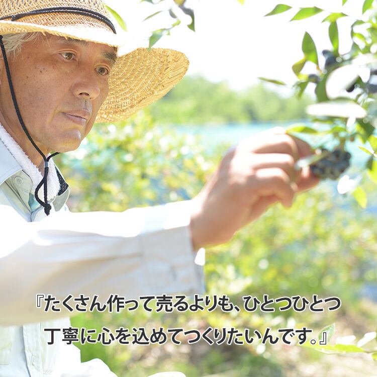 自農園の銚子の大地で無農薬栽培により大切に育てたブルーベリー果実を使い、添加物不使用の手づくりのブルーべりージャム。少人数で農園の手入れから収穫、ジャム作りまでこなしており、大量生産は出来ません。たくさん作って売るよりも、ひとつひとつ丁寧に心を込めてつくりたい、そう考えて良いものを少量だけ販売しております。