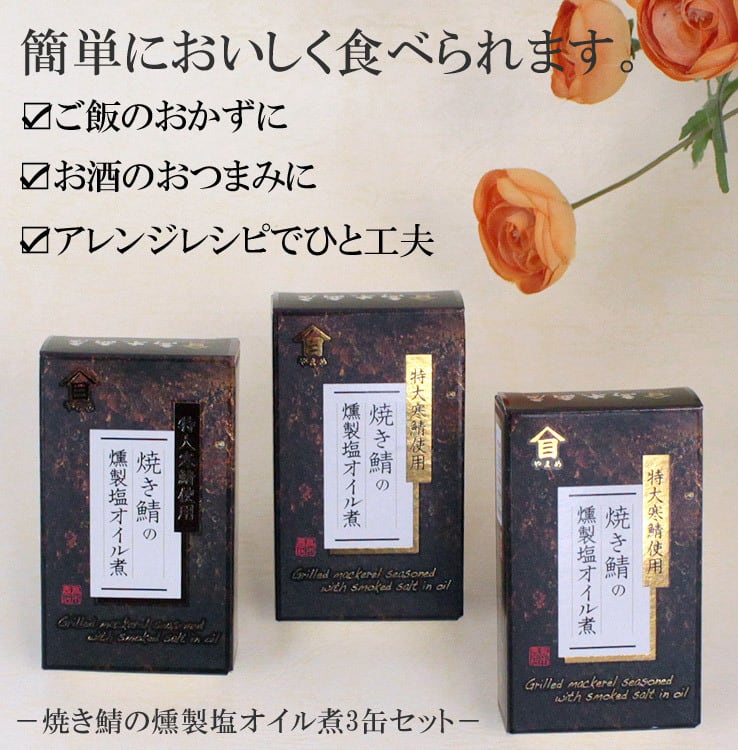 焼き鯖の燻製塩オイル煮缶詰3缶セット 銚子 銚子港直送 さば さば缶詰 サバ 鯖 食品 おかず おつまみ グルメ お取り寄せ 高木商店 日本製 日持ち 健康食品 防災食 時短料理